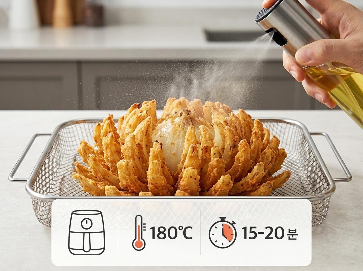 최근 이런 번거로움을 크게 줄인 ‘한국형 양파꽃’ 방식이 주목받고 있다. 한국 가정집 환경에 맞춰 에어프라이어를 활용하고, 구하기 힘든 향신료 대신 마트에서 쉽게 살 수 있는 시판 가루를 쓰는 방식이다. 과정은 단순해졌는데, 비주얼과 바삭함은 그대로 살리는 게 핵심이다.