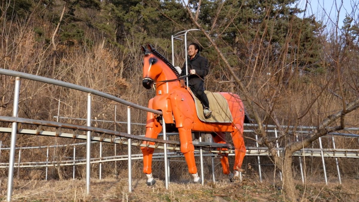 실제 말과 비슷한 크기에 위아래로 움직이는 안장까지. 실제 말과 똑같은 움직임을 재현한 철마를 만든 데엔 특별한 사연이 있다는데.
