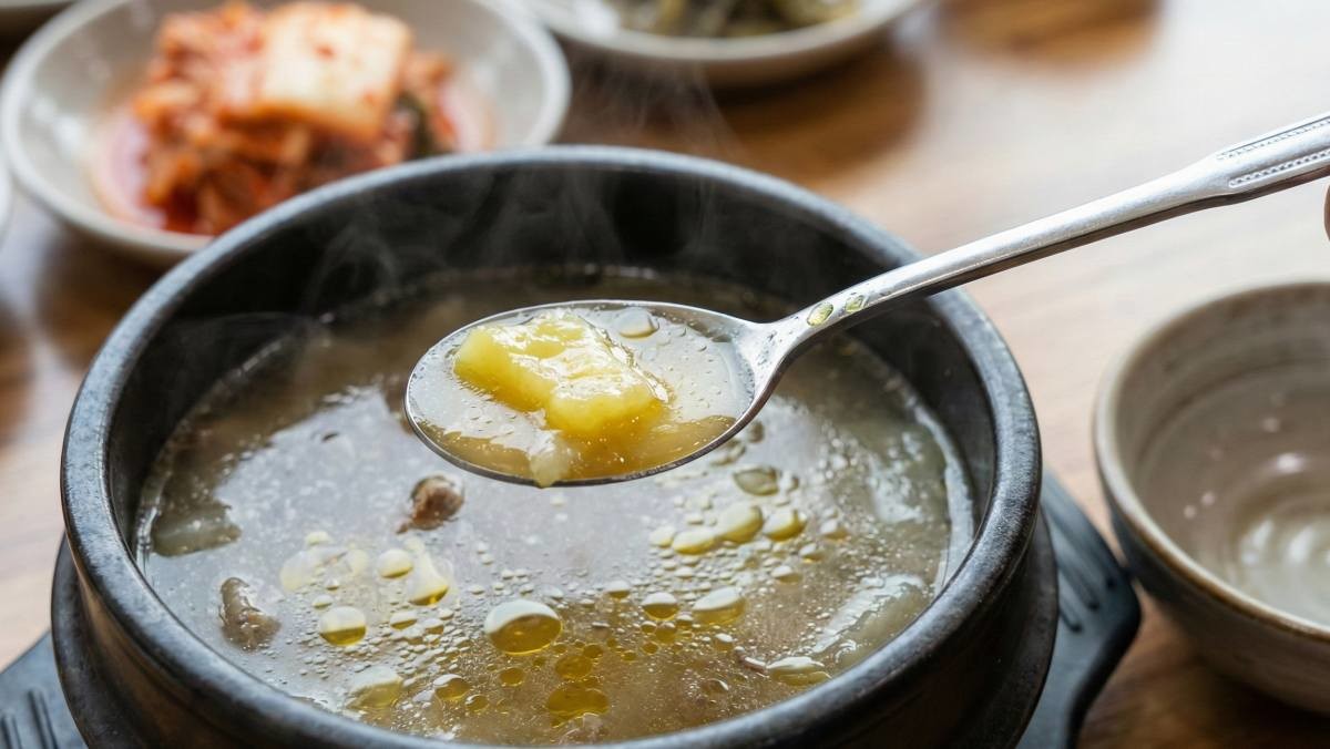 이렇게 기름을 걷어낸 고깃국은 맛부터가 다르다. 첫 입을 먹었을 때 입안에 남는 끈적함이 사라지고 고기 본연의 담백한 육수 맛이 살아난다. 특히 소화력이 약한 어르신들이나 아이들에게 줄 국물이라면 이 과정은 필수다. 동물성 기름을 과하게 먹으면 배탈이 나거나 혈관 건강에 좋지 않은데, 얼음 국자 비법은 이를 아주 손쉽게 해결해준다.