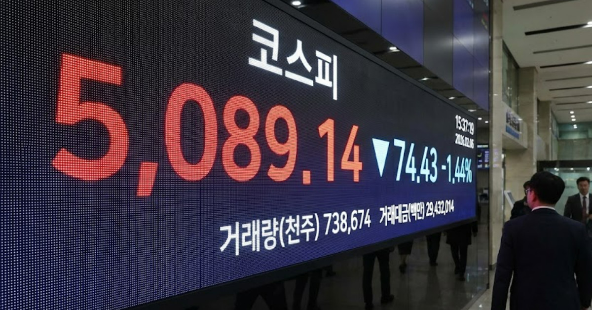 2026년 2월 6일 코스피가 외국인의 대규모 매도 공세에 밀려 5100선을 내어주며 하락 마감했다. 이날 코스피는 전 거래일 대비 74.43포인트(1.44%) 하락한 5089.14로 장을 마쳤다. 개인이 2조 원이 넘는 물량을 받아내며 지수 방어에 나섰으나 3조 원 넘게 쏟아진 외국인의 매물을 소화하기에는 역부족이었다. 시가총액 상위 종목들도 줄줄이 약세를 면치 못한 가운데 현대차가 4%대 급락세를 보이며 지수 하락을 부추겼다.