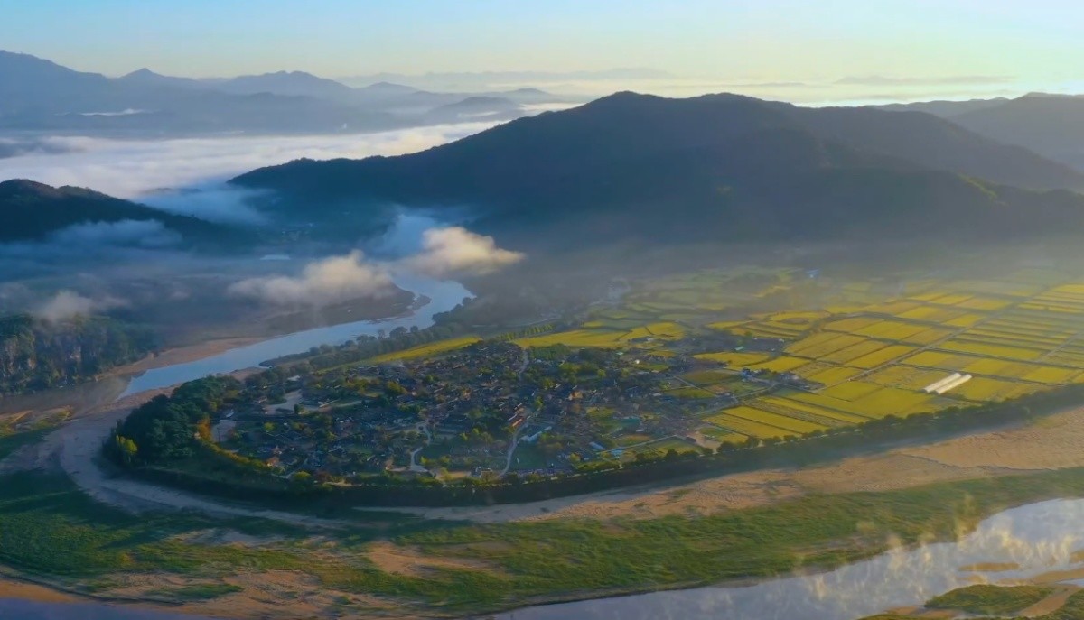 낙동강 물줄기가 마을을 감싸 흐르는 곳에 안동 하회마을이 자리한다. 강물이 동쪽으로 흐르다 S자 형태로 마을을 휘돌아 나가는 지형에서 ‘하회(河回)’라는 이름이 비롯됐다. 기와지붕과 초가집이 어우러진 이 마을은 풍산 류씨 가문이 대대로 거주해 온 대표적인 집성촌으로, 조선 시대 유교 문화를 이끈 대유학자 겸암 류운룡 선생과 서애 류성룡 선생이 태어난 곳으로도 알려져 있다. 1999년 4월에는 영국 엘리자베스 2세 여왕이 한국 방문 중 하회마을을 찾아 세계적인 관심을 모았다.
