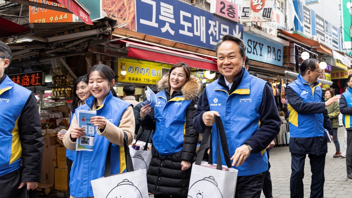 이 캠페인으로 신한금융 진옥동 회장과 임직원들은 이날 남대문시장을 찾아 한파 속에 어려움을 겪고 있는 독거노인 등을 위한 설 물품을 구매했다. 소상공인들과 직접 소통하며 민생 현장의 목소리를 살필 수 있었다.
