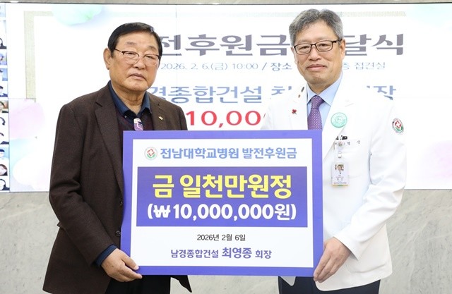 [위키트리 광주전남취재본부 노해섭 기자]호남 건설업계를 대표하는 기업인인 남경종합건설 최영종 회장이 전남대학교병원의 ‘뉴 스마트 병원’ 건립을 응원하며 발전후원금을 1000만원을 쾌척했다.