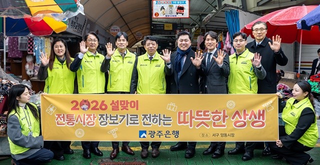 [위키트리 광주전남취재본부 노해섭 기자] 광주은행(은행장 정일선)은 10일, 설 명절을 앞두고 광주 서구 양동시장에서 ‘설맞이 전통시장 장보기 사회공헌 행사’를 진행하고, 가족돌봄아동을 위한 총 500만 원 상당의 장보기 지원금을 전달했다고 밝혔다.