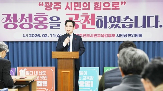 2026 광주민주진보시민교육감시민공천위원회는 11일 경선 결과를 발표하고 정성홍 예비후보를 최종 단일 후보로 확정했다. 정 후보는 김용태, 오경미 예비후보와의 경선에서 승리하며 본선 티켓을 거머쥐었다.