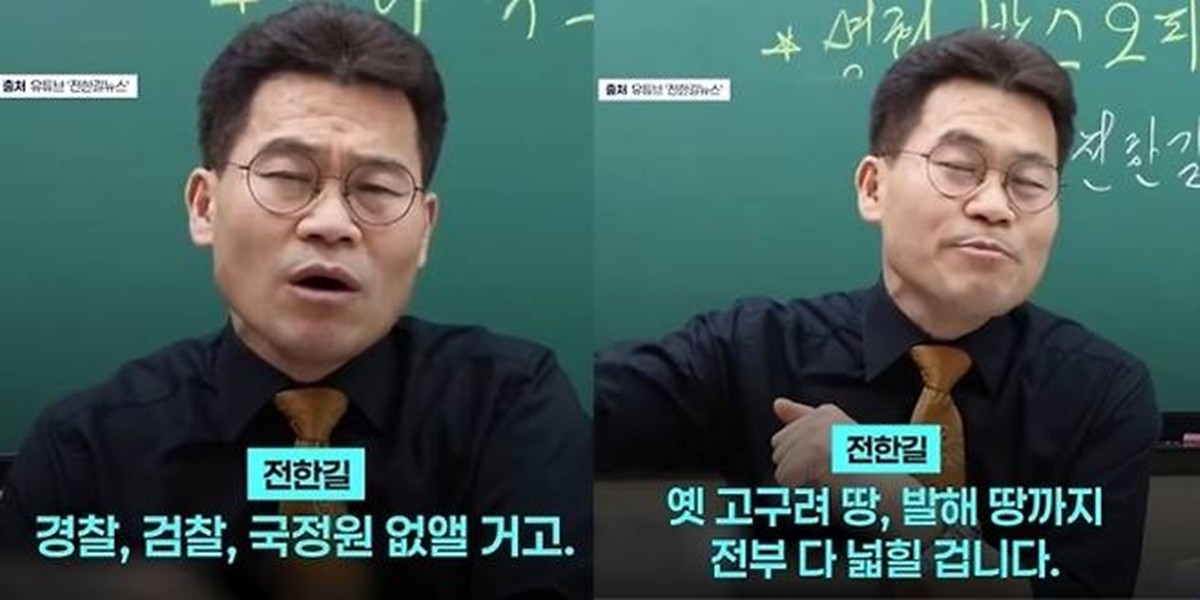 전 씨는 “중국 길림성(지린성), 흑룡강성(헤이룽장성), 요령성(랴오닝성), 몽골까지 합칠 것”이라며 “대한민국이라는 이름도 바꾸겠다”고 강조했다.