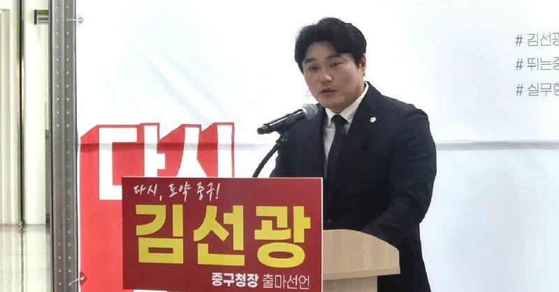 [위키트리 대전=김지연 기자] 국민의힘 김선광(중구2) 대전시의원이 중구청장 출마를 공식 선언하며 ‘다시 도약하는 중구’ 비전을 제시했다.