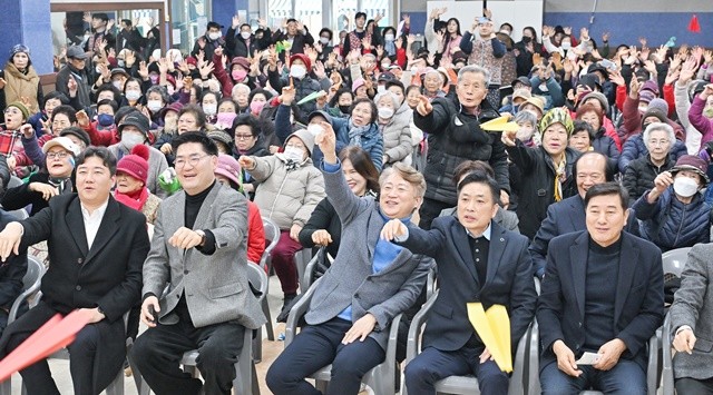 [위키트리 광주전남취재본부 노해섭 기자]김이강 광주 서구청장이 12일 금호종합사회복지관에서 열린 ‘설날 큰잔치’에서 복지관 이용 어르신들에게 건강과 장수를 기원하는 새해 인사를 드리고 있다. 광주 서구 제공
