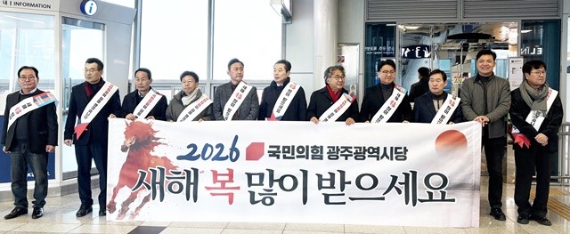 국민의힘 광주시당(위원장 안태욱)은 이날 오전 광주송정역 대합실에서 주요 당직자 20여 명이 참석한 가운데 귀성객 맞이 새해 인사를 진행했다.