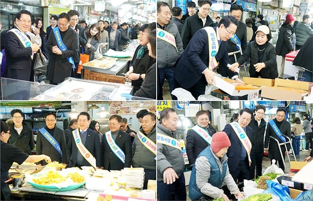 남광주시장을 찾은 김 지사는 손승기 상인회장 등과 함께 온누리상품권으로 제수용품을 구매하며 장바구니 물가를 점검했다. 상인들은 “원자재 가격은 오르고 인건비 부담은 커져서 명절 대목이라도 예전만 못하다”며 어려움을 토로했다. 이에 김 지사는 상인들의 손을 잡으며 “전통시장 지원 정책에 현장의 절박함을 충분히 담아내겠다”고 약속했다.