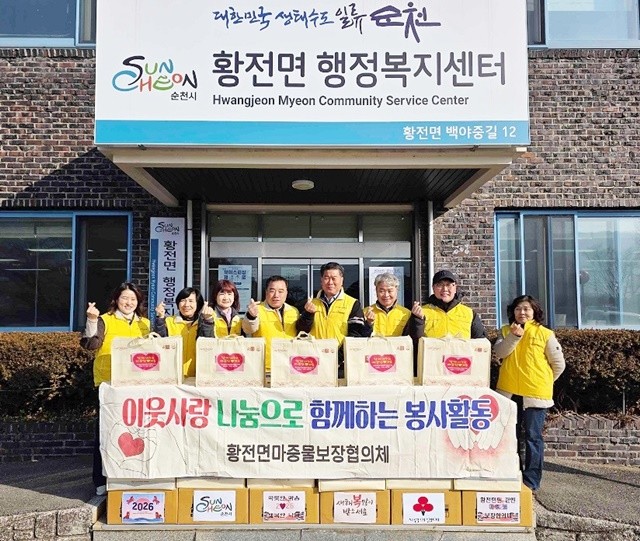 [위키트리 광주전남취재본부 노해섭 기자]순천시 황전면(면장 최영선)은 13일 황전면마중물보장협의체(위원장 장택환)와 사단법인 한마음청년봉사단(단장 김승래)에서 설 명절을 맞아 황전면 저소득 가구를 위한 나눔활동을 펼쳤다고 밝혔다.