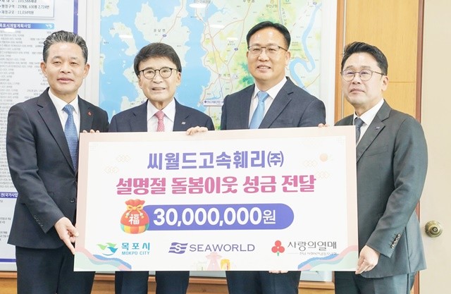 씨월드고속훼리는 설 명절을 앞둔 지난 12일, 목포시를 방문해 어려운 이웃을 위해 써달라며 성금 3,000만 원을 기탁했다고 14일 밝혔다.