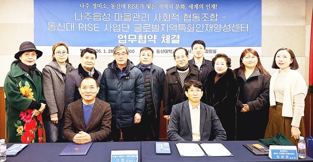 동신대학교 RISE사업단 글로벌지역특화인재양성센터(센터장 임순호)는 최근 나주읍성 마을관리 사회적 협동조합(대표이사 이명규)과 지역 문화 활성화를 위한 업무협약을 체결했다고 15일 밝혔다.