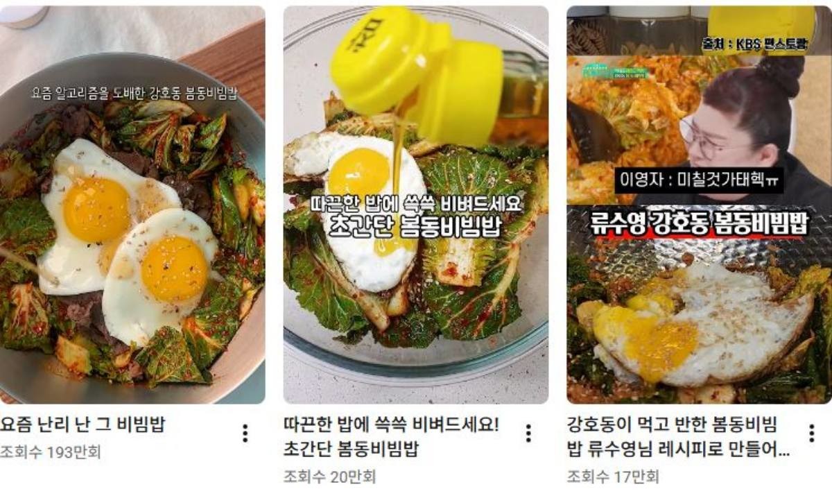 인스타그램과 유튜브 쇼츠 등 숏폼 콘텐츠를 중심으로 '봄동 비빔밥' 열풍이 거세다. 알고리즘을 통해 관련 레시피 영상이 반복적으로 노출되면서, 이를 직접 만들어 먹고 인증하는 흐름이 하나의 문화처럼 번지고 있다. 식재료 판매량과 온라인 언급량 역시 가파른 상승 곡선을 그리는 추세다.