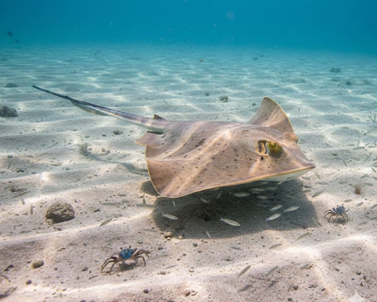 ● 바다 밑 모래 속 몸 숨긴다... 특이한 색감의 '노랑가오리'