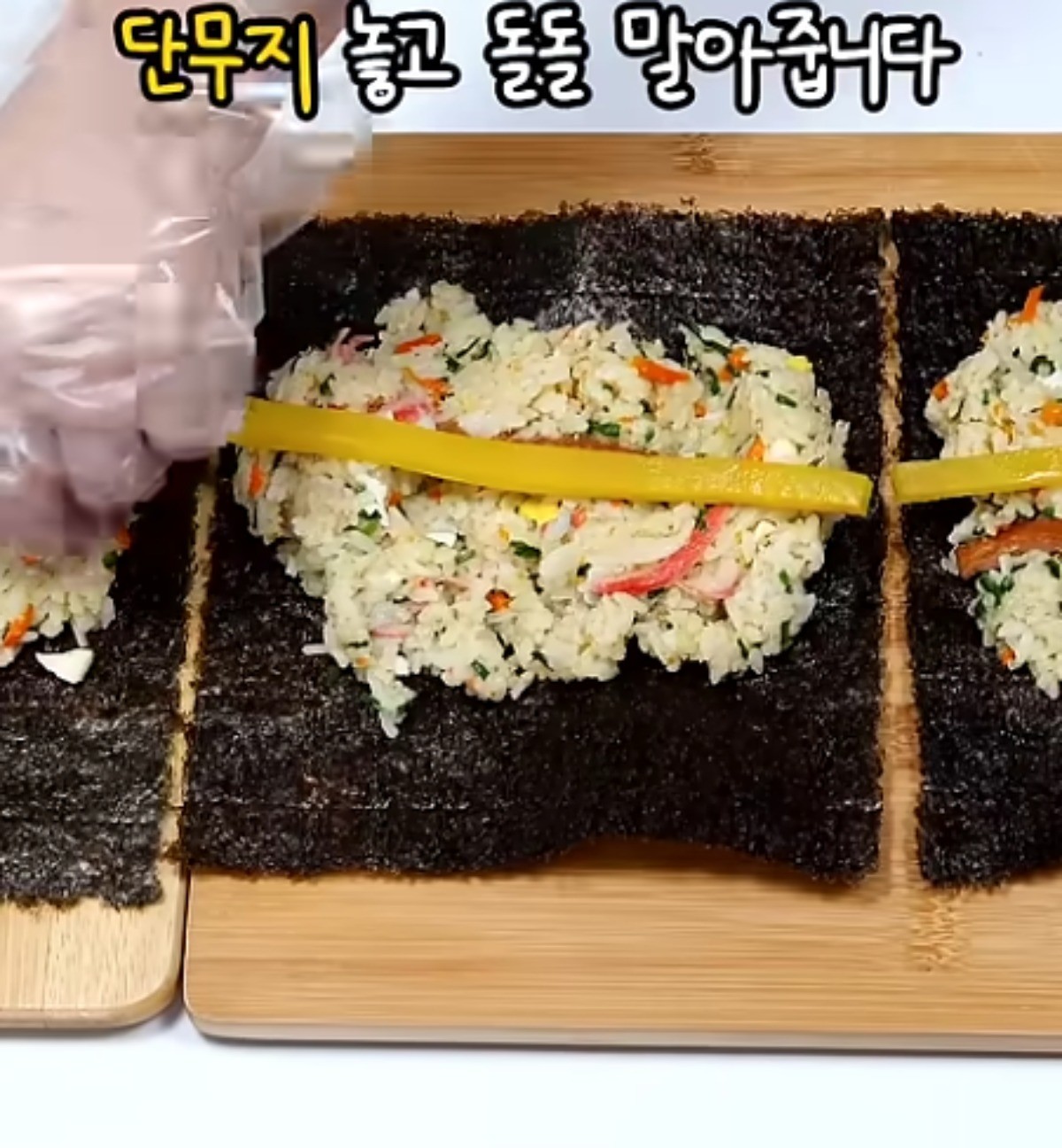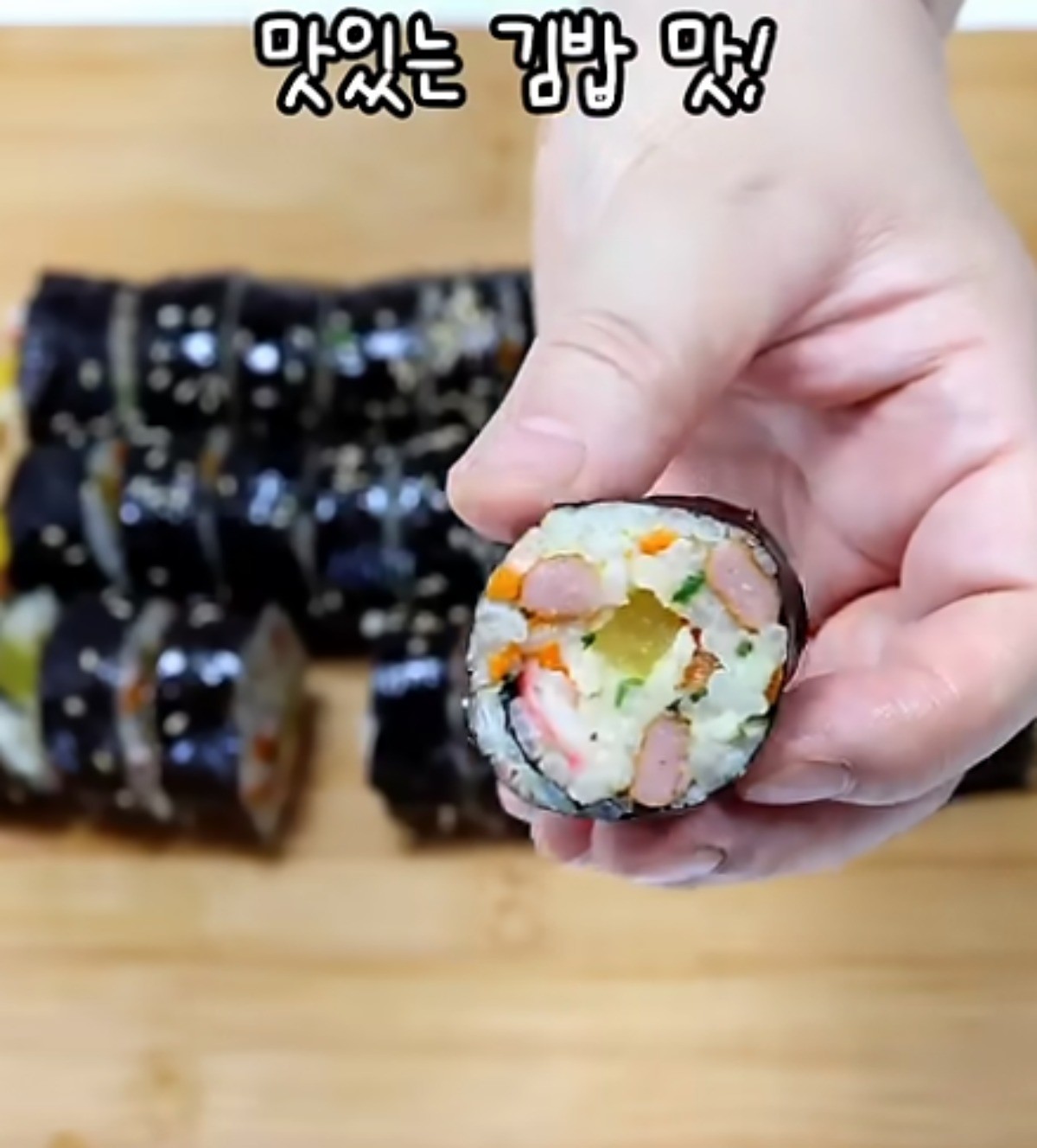 또한 속 재료를 변경해 버섯 김밥을 만들 수도 있다. 햄과 계란 대신 표고버섯과 느타리버섯을 듬뿍 넣고, 액젓 대신 국간장과 들기름을 사용한다. 혹은 아이들을 위해 속 재료에 완두콩과 옥수수 콘을 추가하는 것도 도움이 된다.