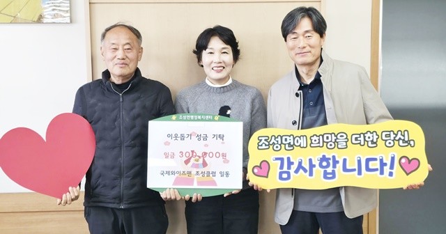 정인숙 조성면장은 “꾸준히 어려운 이웃을 위해 잊지 않고 애써주시는 마음에 깊이 감사드린다.”며 “기탁해 주신 성금은 도움이 필요한 가구에 소중히 전달될 수 있도록 효율적으로 운용하겠다.”라고 전했다.