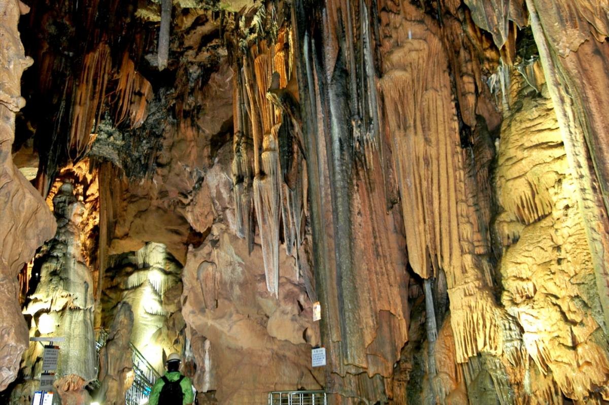 동굴의 전체 길이는 870m로 현재 개방된 구간은 270m 정도다. 내부에는 9개의 광장과 수심 4~5m 정도의 맑은 물웅덩이 3개가 자리한다. 동굴 내부에는 석회질 지하수가 억겁의 시간 동안 빚어낸 담홍색과 회백색의 종유석, 석순, 석주들이 기묘한 형상을 이루며 장관을 연출한다. ‘지하 궁전’이라는 별칭이 어색하지 않을 만큼 정교하게 빚어진 생성물은 자연이 오랜 시간 공들여 설계한 건축물처럼 느껴진다.
