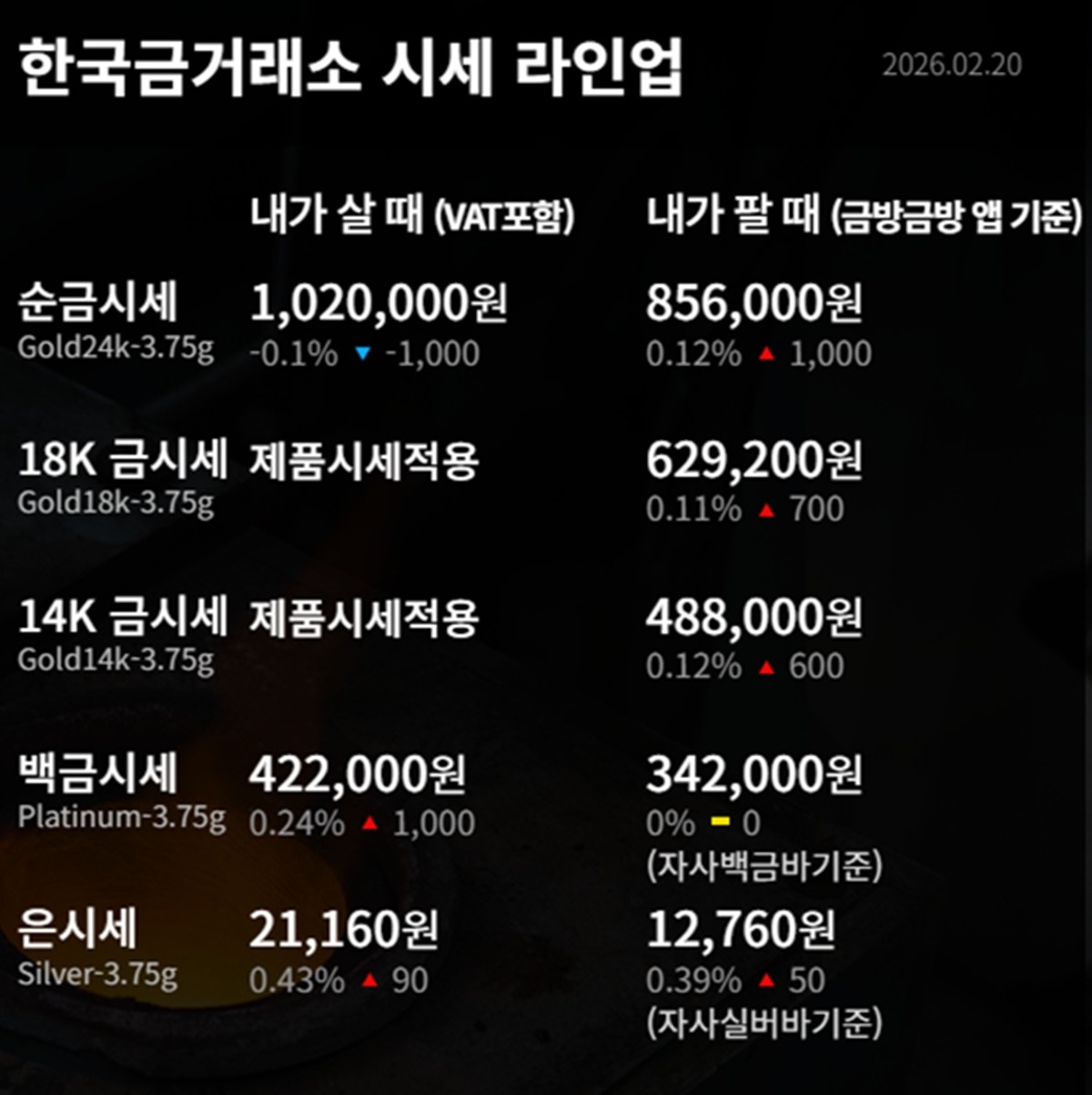 순금 : 매입가 102만 원 / 매도가 85만 6000원
