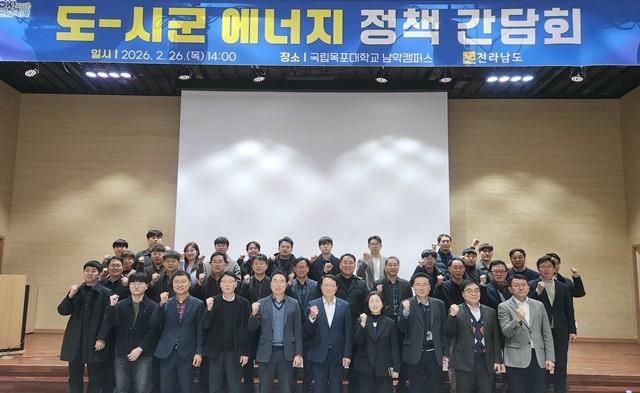 전라남도는 지난 26일 국립목포대학교 남악캠퍼스에서 유현호 전남도 에너지산업국장을 비롯해 도내 22개 시군 에너지 담당 과장 등 100여 명이 참석한 가운데 ‘도-시군 에너지 정책 간담회’를 개최했다고 밝혔다.