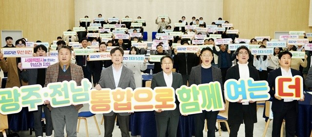 강기정 광주시장은 "첨단3지구 AI 집적단지와 전남 동부권을 잇는 거대한 'AX(인공지능 전환) 산업 메가 클러스터'는 오직 광주·전남 통합을 통해서만 그려낼 수 있는 그림"이라며 "통합을 계기로 산업을 키우고 좋은 일자리를 만들어, 청년들이 떠나지 않고 머무는 '기회의 땅'을 만들겠다"고 강조했다.