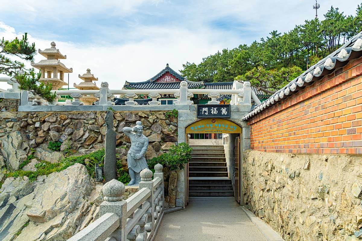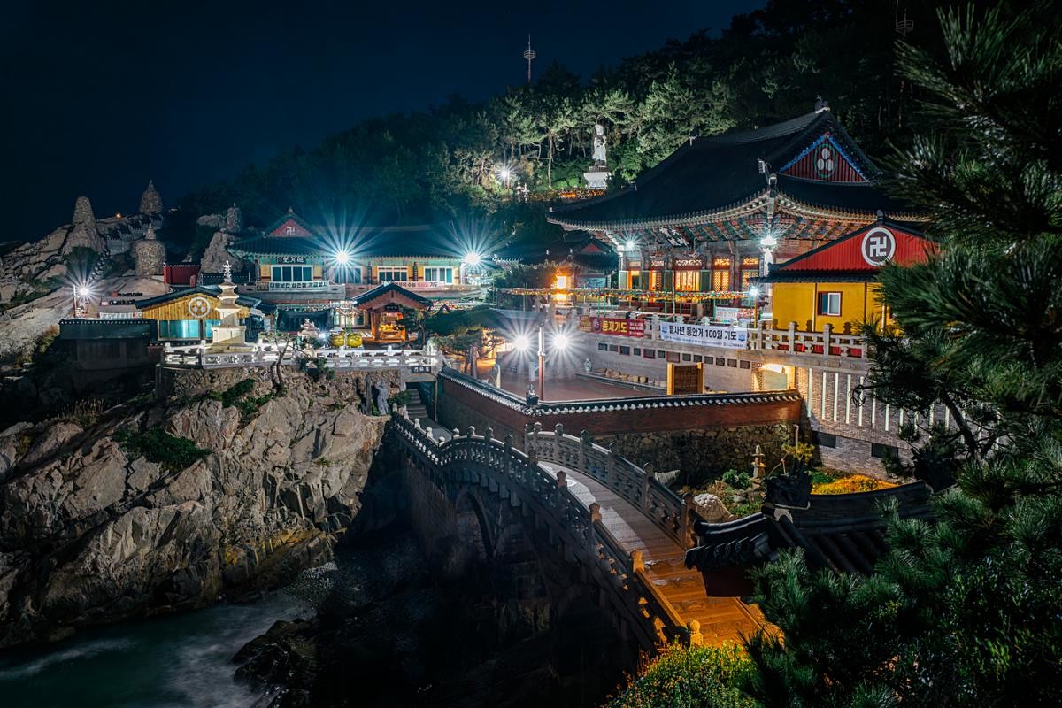 부산 기장군 기장읍 해안에 위치한 해동용궁사는 1376년 고려 공민왕의 왕사였던 나옹대사가 창건했다. 한국의 3대 관음성지 중 한 곳으로 꼽히는 이곳은 본래 보문사라 불렸으나, 임진왜란 당시 화마로 소실되는 아픔을 겪기도 했다. 이후 1930년대 초 통도사의 운강 스님이 중창하며 명맥을 이었고, 1974년 주지로 부임한 정암 스님이 관음도량으로 복원하는 과정에서 현재의 이름을 갖게 되었다. 정암 스님이 백일기도 중 흰 옷을 입은 관세음보살이 용을 타고 승천하는 꿈을 꾸었다는 일화는 사찰의 신비로운 분위기를 뒷받침한다.