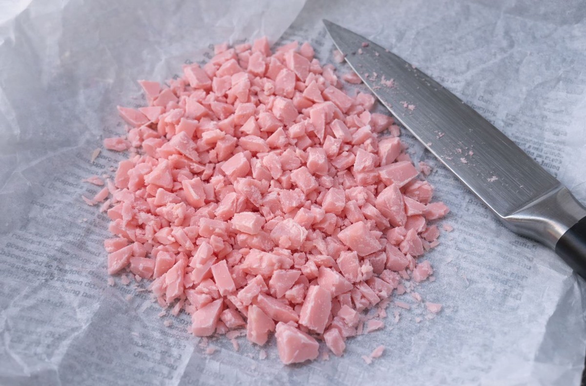 전자레인지에서 꺼낸 비누는 신문지 위에 올려놓고 칼을 이용해 잘게 조각을 내준다. 신문지는 작업대가 젖거나 미끄러지는 것을 막아 주고 잘린 비누 조각을 한곳에 모으는 데도 도움이 된다. 이 과정에서는 무엇보다 안전에 유의해야 한다.