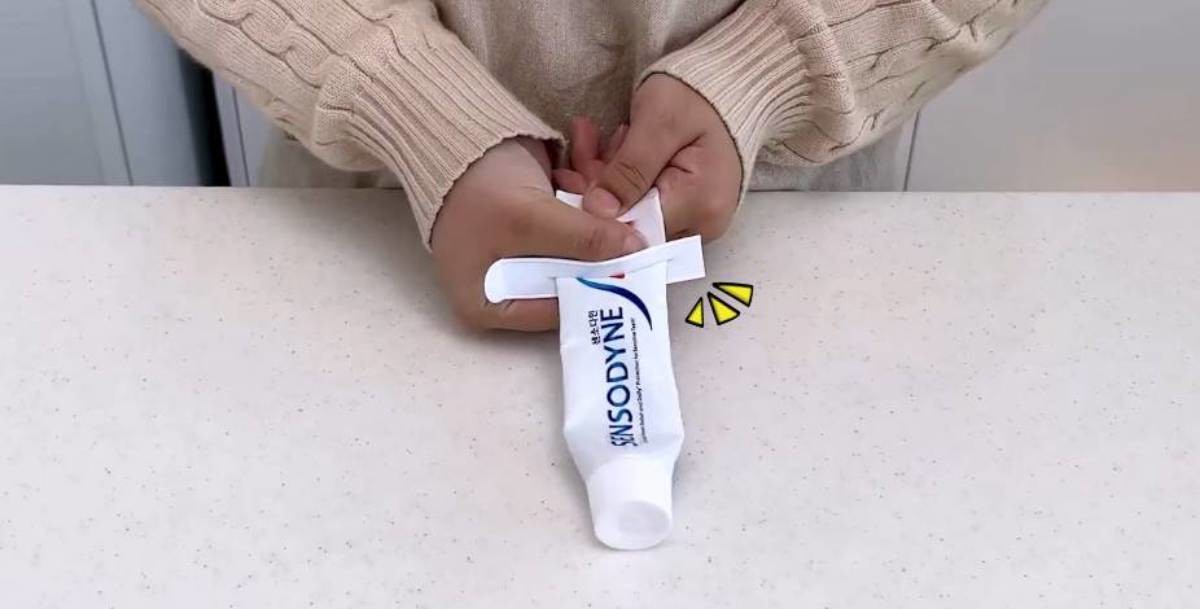 치약을 끝까지 사용하려면 손으로 계속 밀어 올려야 한다. 가족마다 사용하는 방식이 달라 치약이 중간에서 구겨지는 경우도 흔하다.