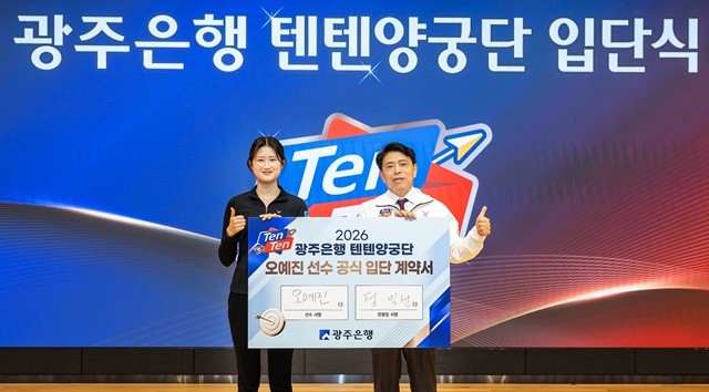 [위키트리 광주전남취재본부 노해섭 기자] 광주은행(은행장 정일선)은 9일 본점에서 ‘텐텐(Ten Ten) 양궁단’의 2026년 출정식과 함께 오예진 선수 입단식을 개최하고 새 시즌을 향한 각오를 다졌다고 밝혔다.