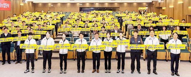 한편 이날 출정식은 선수단 소개를 시작으로 감독 및 선수 각오 발표, 단기 전달식, 여자양궁 올림픽 3관왕인 광주여자대학교 기보배 교수의 축사, 정일선 광주은행장의 격려사 순으로 진행됐다.