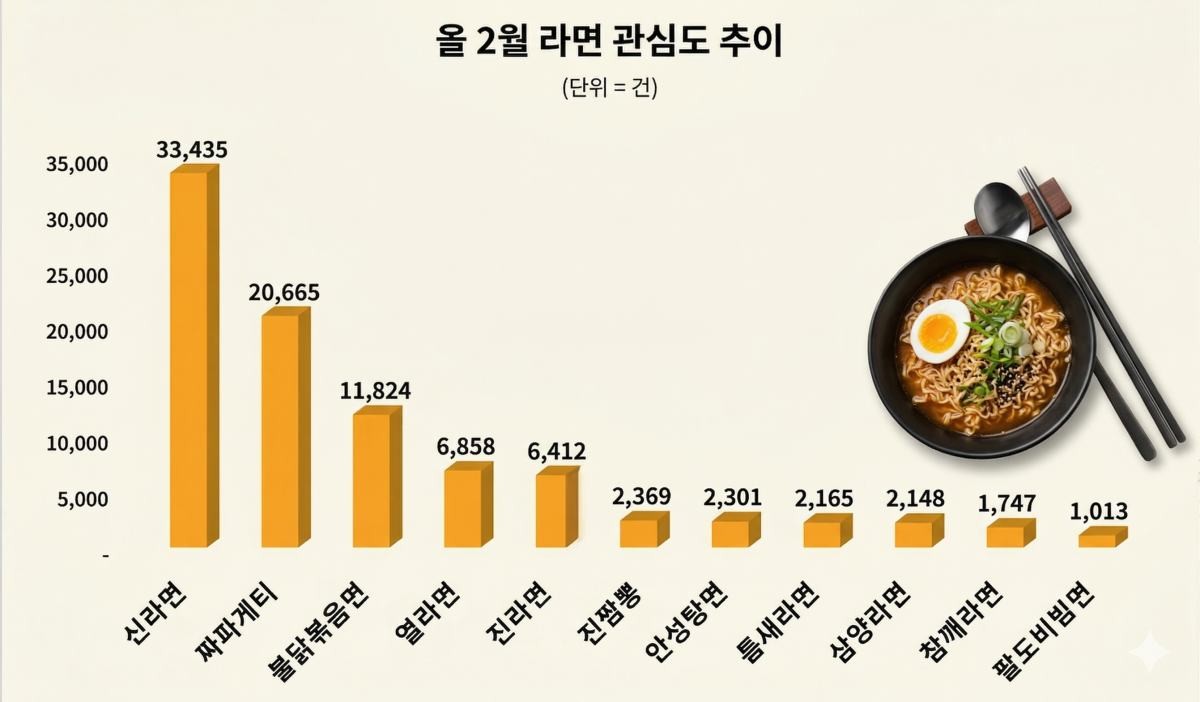 2026년 2월에도 국내 봉지라면 시장에서 가장 높은 소비자 관심을 받은 것으로 나타난 브랜드가 화제다. 바로 1986년 출시 이후 40년 동안 이어온 '신라면'이 올해 초 선보인 신제품 '신라면 골드'의 흥행과 맞물려 정점을 찍고 있다는 분석이다.