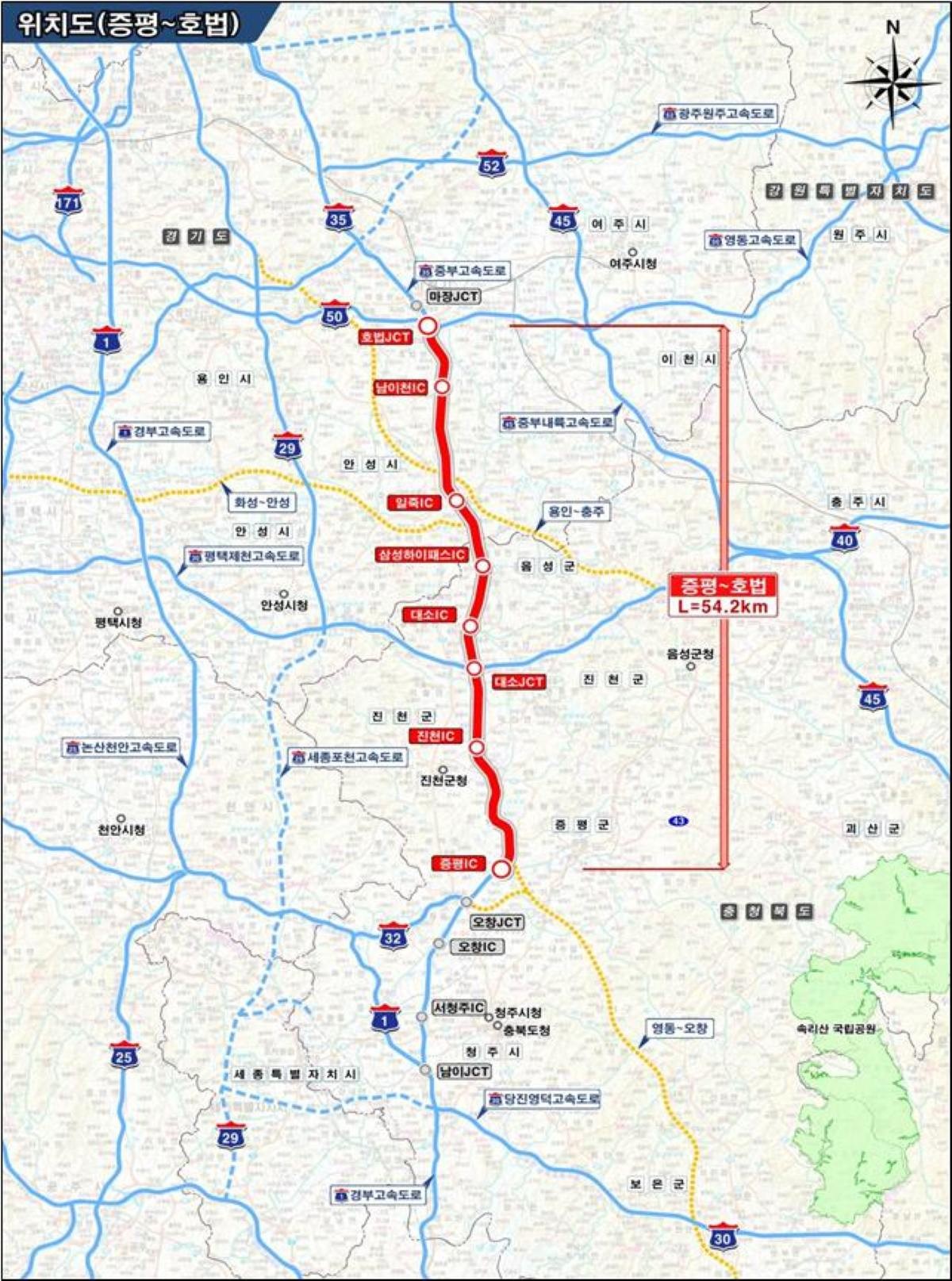 중부고속도로 증평~호법 구간 확장 사업은 충북 청주시 오창읍 증평 나들목(IC)부터 경기 이천시 호법 분기점(JCT)에 이르는 54.2㎞ 구간을 기존 왕복 4차로에서 6차로로 넓히는 대규모 국책 사업이다. 총사업비만 약 1조 4000억 원이 투입될 것으로 추산된다. 이 구간은 하루 평균 7만 대 이상의 차량이 쏟아져 들어오며 꽉 막힌 ‘교통 지옥’이라는 오명을 써왔다. 특히 청주와 진천, 음성 일대의 산업단지가 급격히 팽창하면서 대형 화물차의 통행 비율이 기형적으로 높아진 데다, 최근 청주국제공항 이용객까지 폭발적으로 증가하며 도로 용량이 이미 한계치를 훌쩍 넘어섰다는 지적이 끊이지 않았다.