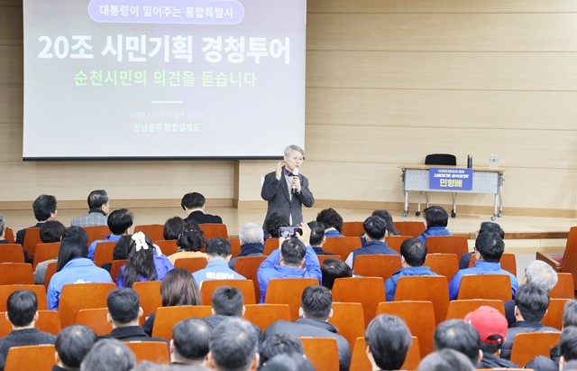 민 후보는 12일 보도자료를 통해 “전날 국립순천대학교에서 열린 ‘20조 시민기획 경청투어’에서 시민들에게 이 같은 내용을 골자로 한 통합 경제 비전을 제시했다”고 밝혔다.