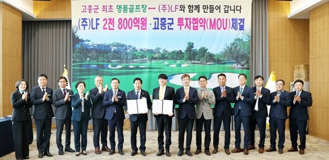 [위키트리 광주전남취재본부 노해섭 기자]고흥군(군수 공영민)은 12일 고흥 썬밸리리조트에서 ㈜LF와 ‘고흥 신곡리 골프 & 리조트 조성사업’의 원활한 추진을 위한 투자협약(MOU)을 체결하고, 고흥군 최초의 골프장 조성사업을 본격 추진한다고 밝혔다.