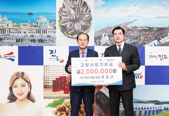[위키트리 광주전남취재본부 노해섭 기자] ㈜덕인약품 윤송균 대표가 지난 3월 9일 진도군에 고향사랑기부금 200만 원을 기부하며 지역 상생과 나눔 실천에 동참했다.