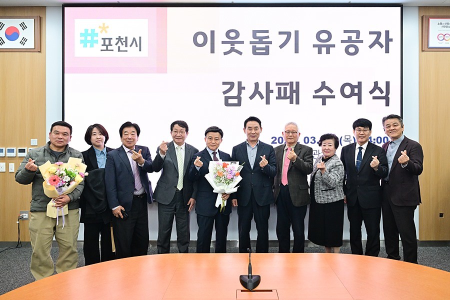 경기 포천시(시장 백영현)는 지난 12일(목) 시정회의실에서 '이웃돕기 유공자 감사패 수여식'을 개최하고, 지역사회 나눔 문화 확산에 기여한 후원자들에게 감사패를 전달했다.