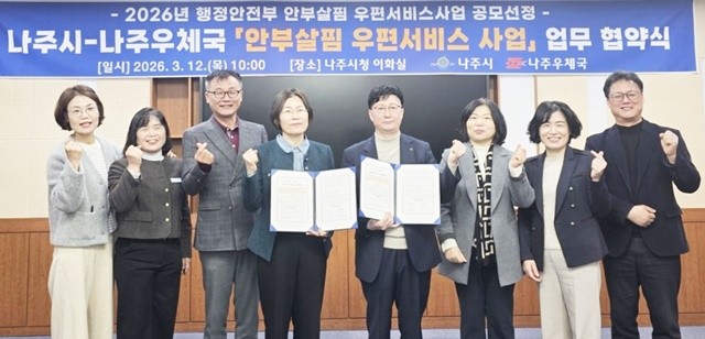나주시는 행정안전부 ‘2026년 안부살핌 우편서비스 사업’ 공모에 선정돼 4월에 대상자를 선정하고 오는 5월부터 사업을 본격 시행할 계획이라고 13일 밝혔다.