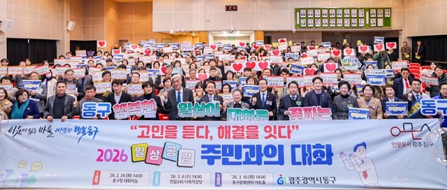 [위키트리 광주전남취재본부 노해섭 기자]광주시 동구는 주민들의 생활 속 불편과 지역 현안을 직접 듣기 위해 추진한 ‘일상공감 주민과의 대화’가 3개 권역 순회를 끝으로 성황리에 마무리됐다고 밝혔다.