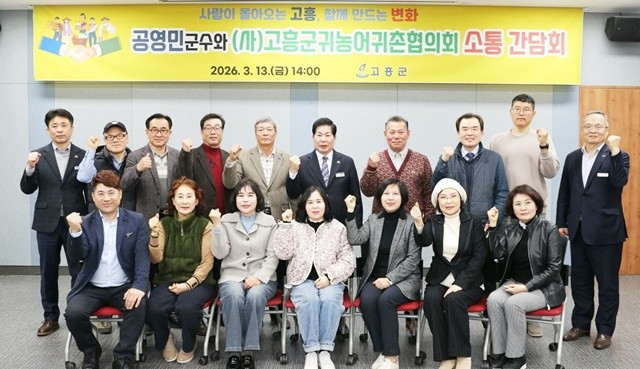 [위키트리 광주전남취재본부 노해섭 기자]고흥군(군수 공영민)은 13일 군청 팔영산홀에서 (사)고흥군귀농어귀촌협의회(회장 박강석) 집행부와 함께 귀농어 귀촌인의 안정적인 정착과 인구 유입 확대를 위한 소통 간담회를 개최했다고 밝혔다.