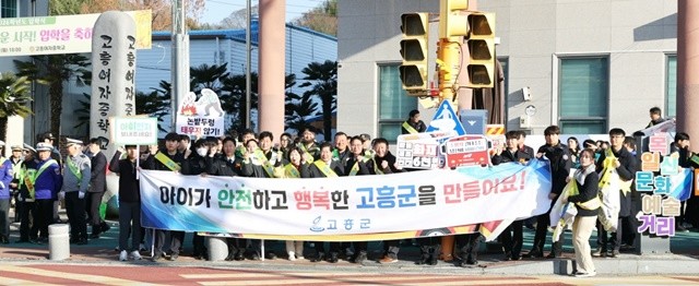 이번 캠페인은 어린이 등교 시간대에 맞춰 진행됐으며, 고흥군과 고흥경찰서, 고흥소방서, 고흥교육지원청, 자율방범대, 모범운전자회 등 100여 명이 참여해 민관 합동으로 진행됐다.