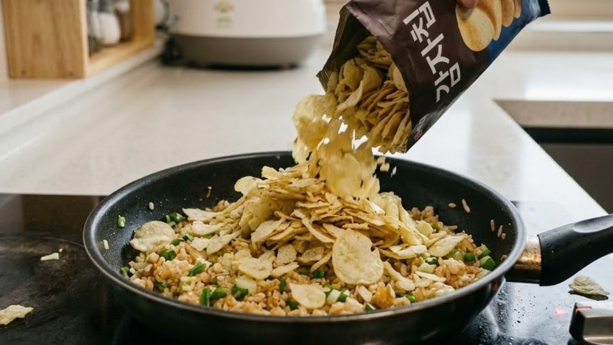 아이들이 먹다 남긴 감자칩을 부숴 볶음밥에 넣으면 간단한 한 끼가 완성되는 이색 레시피가 화제를 모으고 있다. 짭조름한 감자칩의 맛과 바삭한 식감을 그대로 살린 ‘감자칩 볶음밥’ 조리법이 온라인에서 관심을 끌고 있다.