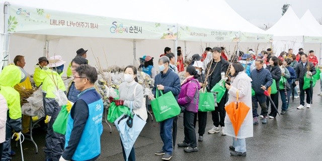 이번 행사는 전라남도, 순천국유림관리소, 순천농협, 순천시산림조합과 협력하여 마련됐으며, 대추·살구·자두·복숭아 등 과실수와 황칠, 서향(천리향), 미니화분 등 총 7종 21,000주의 묘목을 준비해 순천시민 3,000명에게 1인당 7주씩 배부했다.
