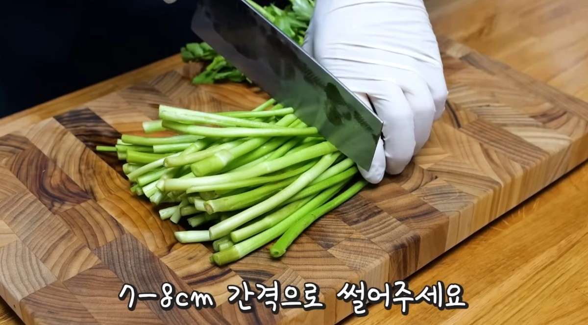 유튜브 '김대석 셰프TV'에 따르면, 레시피는 다음과 같다. 먼저 재료 손질이 필요하다. 20cm 길이의 우엉을 수세미로 깨끗하게 씻는다. 이후 우엉을 반으로 나누고 4~5mm 간격으로 길게 썬다. 썬 우엉을 찬물에 담근 후 소금 한 꼬집과 간장 한 스푼으로 밑간을 한다.