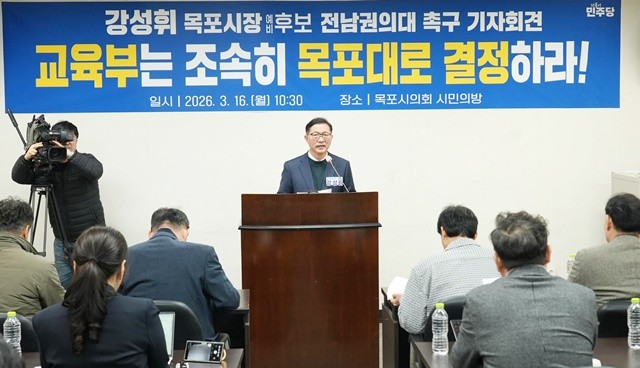 또한, 강 후보는 “특정 지역을 전제로 결론을 정하는 것은 대학본부와 의대를 분리 배치하기로 한 전남도와 양 대학 간의 3자 합의를 흔드는 것”이라고 비판했다. 이어 “목포는 이미 옥암지구 16만㎡ 부지가 확보된 준비된 지역”이라며 “정원 100명과 2030년 개교가 확정된 만큼, 교육부가 객관적 실사를 통해 조속히 결론을 내려야 한다”고 촉구했다.