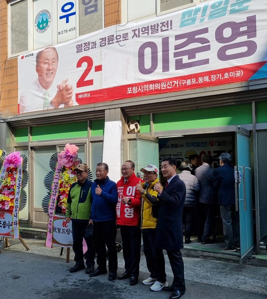 [포항=위키트리]이창형 기자=이준영 국민의힘 포항시의원 예비후보(구룡포,동해,장기,호미곶)가 21일 구룡포읍에서 선거사무소 개소식을 열고 본격적인 선거운동에 돌입했다.
