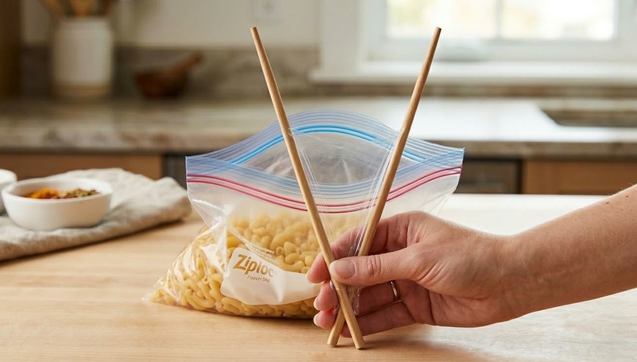 이럴 때 집에서 손쉽게 구할 수 있는 일회용 나무젓가락을 활용하면 지퍼백을 훨씬 수월하게 닫을 수 있다. 이 방법은 별도의 도구를 새로 사지 않아도 되고 준비 과정도 간단해 생활 속 꿀팁으로 활용하기 좋다.