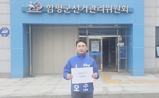[위키트리 광주전남취재본부 노해섭 기자]이남오 함평군의회 의장이 더불어민주당 함평군수 예비후보로 공식 등록하며 본격적인 선거 행보에 나섰다.