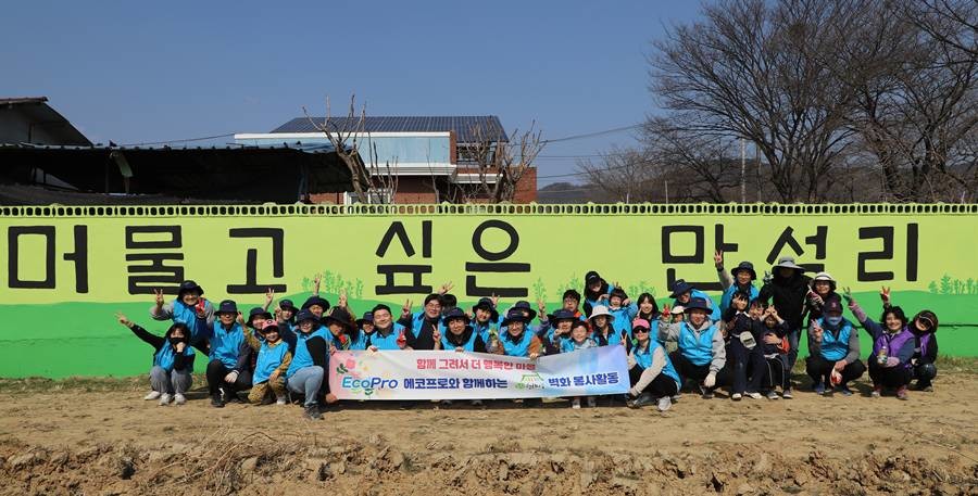 에코프로는 지난 21일 포항시 북구 신광면 만석2리 마을 일원에서 ‘행복마을 조성 사업’의 일환으로 벽화봉사활동을 진행했다.