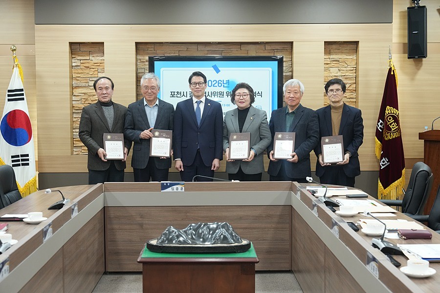 경기 포천시의회(의장 임종훈)는 24일 의원회의실에서 포천시 2025년 회계연도 결산검사위원 위촉식을 개최했다.