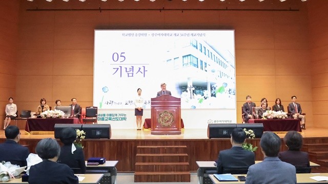 행사의 백미는 오장원 이사장의 기념사였다. 오 이사장은 강단에 올라 "우리 대학이 급변하는 교육 환경 속에서도 흔들림 없이 한 단계 더 도약하기 위해서는 교직원 간의 긴밀한 의사소통과 진정성 있는 협력이 그 어떤 것보다 필수적"이라고 강조했다. 이어 "설립자님의 숭고한 헌신과 '여성 인재 양성'이라는 변치 않는 건학 이념을 가슴 깊이 새겨, 광주여대의 눈부신 미래를 다 함께 열어가자"고 힘주어 당부했다.